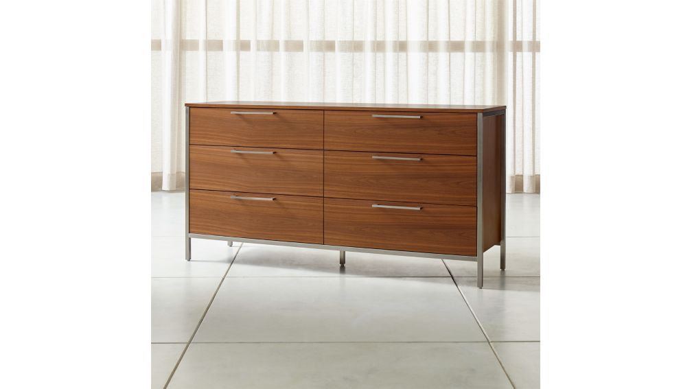 James Walnut with Stainless Steel Frame 6-Drawer Dresser with Power Outlet + Reviews Crate and